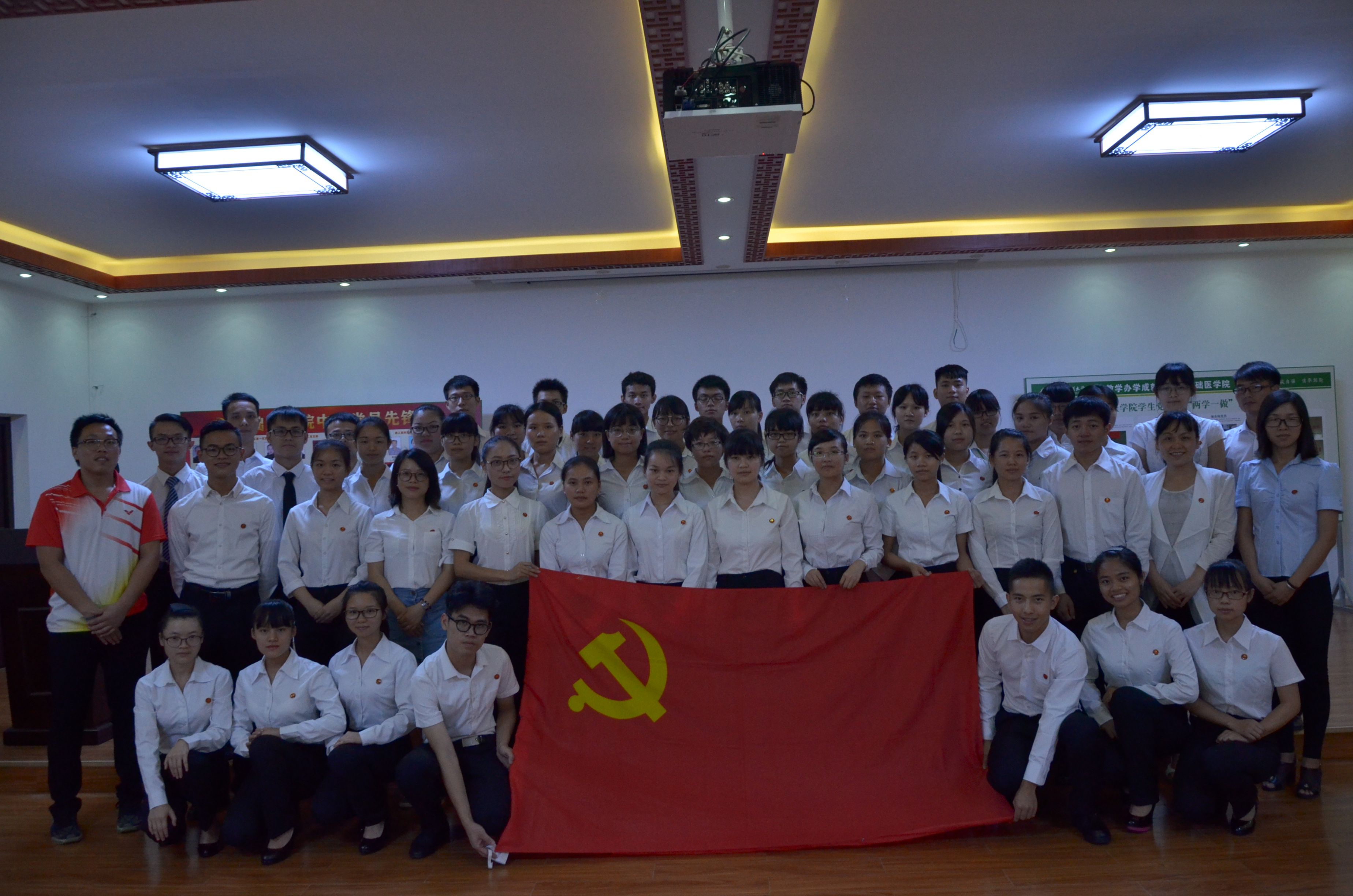 为热烈庆祝中国共产党建党95周年,为引导广大党员同志充分践行“两学一做”精神,激发广大大学生党员要勇敢面向未来,敢于挑战,不忘初心,做时代奋进者、开拓者和奉献者的信心,用实际行动为实现中华民族伟大复兴的中国梦共同打拼。基础医学院学生党支部在校党委、院党委的指导下,于2016年7月1日在基础医学院会议室召开“不忘初心,做时代奋进者”为主题入党宣誓大会。基础医学院党委副书记、副院长杨美春,基础医学院党委副书记龙春莉,基础医学院学生工作办公室老师杨丽琴、和卫宾、张锐以及学院全体党员参加本次大会。。