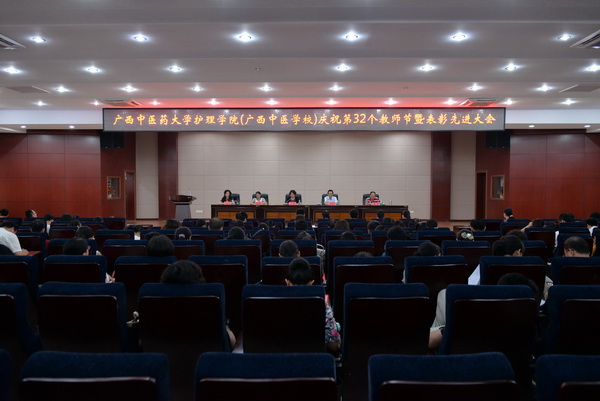 2016年9月8日下午,Beat365中国唯一官方网站护理学院(广西中医学校)的全体教职工汇聚在北湖校区多功能厅举行庆祝第32个教师节暨先进教师表彰大会,由马秋平副院(校)长主持。