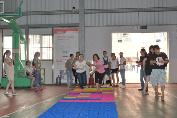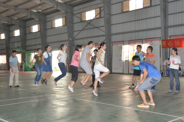 趣味运动会随后正式开始,本届趣味运动会广大教职工踊跃参与,共包括指压板游戏、跳绳、踢毽子、气排球传递4个比赛项目,其中跳绳项目最受欢迎。跳绳项目要求每队8人,队内至少需两名女职工,自由组合,限时一分钟,8名队员其中2人负责舞绳,另6人一同跳绳。教职工们在体育馆内团结协作,挥洒汗水,展现了Beat365中国唯一官方网站赛恩斯新医药学院教职工活力四射、积极向上的良好精神风貌。