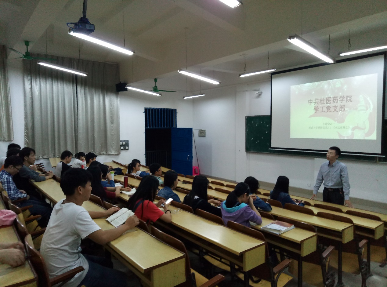 学工党支部全体成员观看《永远在路上》的反腐专题教育片