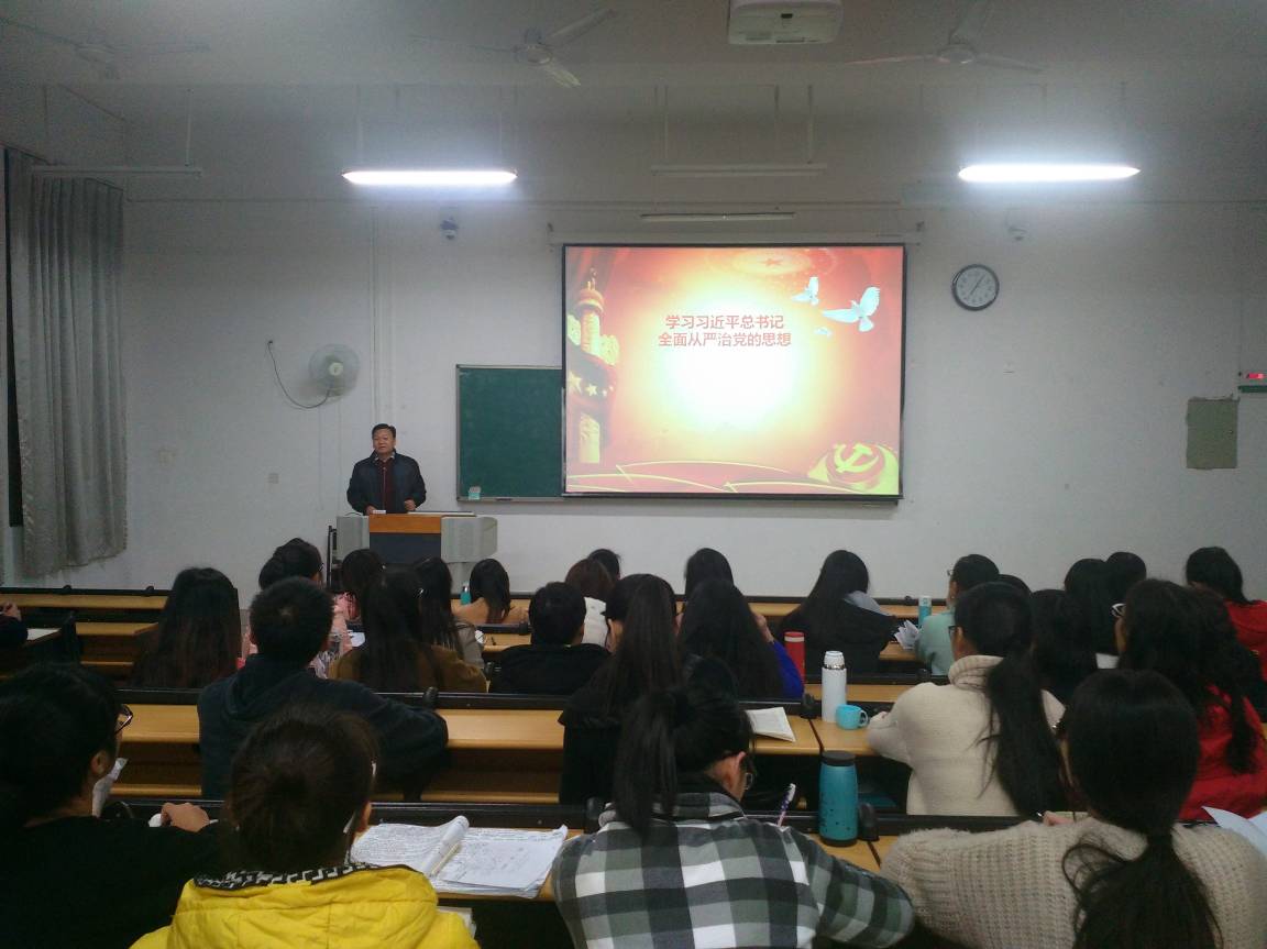 校学工部部长肖华业给入党积极分子及学生党员讲“中国共产党的作风与纪律”