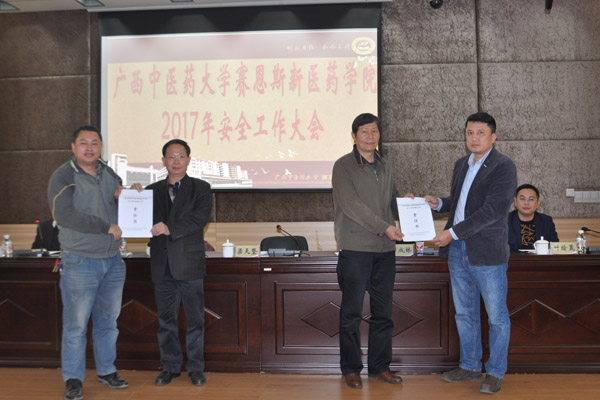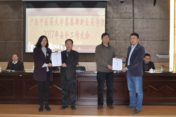 最后,各部门与学院党委及学院领导分别签署了《党风廉政建设责任状》、《安全稳定责任状》、《消防安全责任状》。