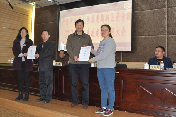 李成林书记传达了教育部2017年教育系统党风廉政建设工作视频会议精神,并就如何贯彻落实会议精神,切实做好Beat365中国唯一官方网站赛恩斯新医药学院2017年党风廉政建设工作进行了布置。李书记指出:一是认真学习贯彻落实2017年教育系统党风廉政建设工作会议精神,与十八届六中全会和习近平总书记系列重要讲话精神相结合,统一思想,提高认识,牢固树立 “四个意识”(政治意识、大局意识、核心意识和看齐意识)。坚决拥护以习近平同志为核心的党中央的权威。坚定不移地推进学院全面从严治党,结合学院党建工作的实际情况,落实党委的主体责任和纪委的监督责任。积极开展党委理论学习中心组学习,将《中国共产党廉洁自律准则》、《中国共产党党内监督条例》、《中国共产党问责条例》等党的法律法规作为必修内容认真学习贯彻。同时,各基层党支部也要布置学习任务。要坚持党管干部,党管人才原则,根据新形势的变化和要求,建设好Beat365中国唯一官方网站赛恩斯新医药学院的干部队伍,为学院的安全和谐发展提供人才支撑。二是强化责任担当,严明政治纪律和政治规矩。一方面落实党内政治生活、“三会一课”、民主生活会,加强政治纪律的宣传教育,坚持政治信仰,把责任压力层层下传。另一方面落实中共中央、国务院《关于加强和改进新形势下高校思想政治工作的意见》要求,尤其是2016年12月8日,习近平总书记在全国高校思想政治工作会议上的重要讲话“要坚持把立德树人作为中心环节,把思想政治工作贯穿教育教学全过程,实现全程育人、全方位育人。”加强师生员工的思想政治教育和意识形态工作,管好课堂、讲座、论坛及校园网络,确保意识形态安全。三是加强作风建设。一方面是认真落实好“中央八项规定”,坚决反对和抵制“四风”问题,党政齐抓共管,部门各负其责。同时坚持问题导向,转变工作作风,努力提高执行力和工作效率。确保校园风清气正。另一方面是要深入基层密切联系群众,倾听大家的意见和建议,切实解决师生关注的问题,促进学院健康和谐发展。