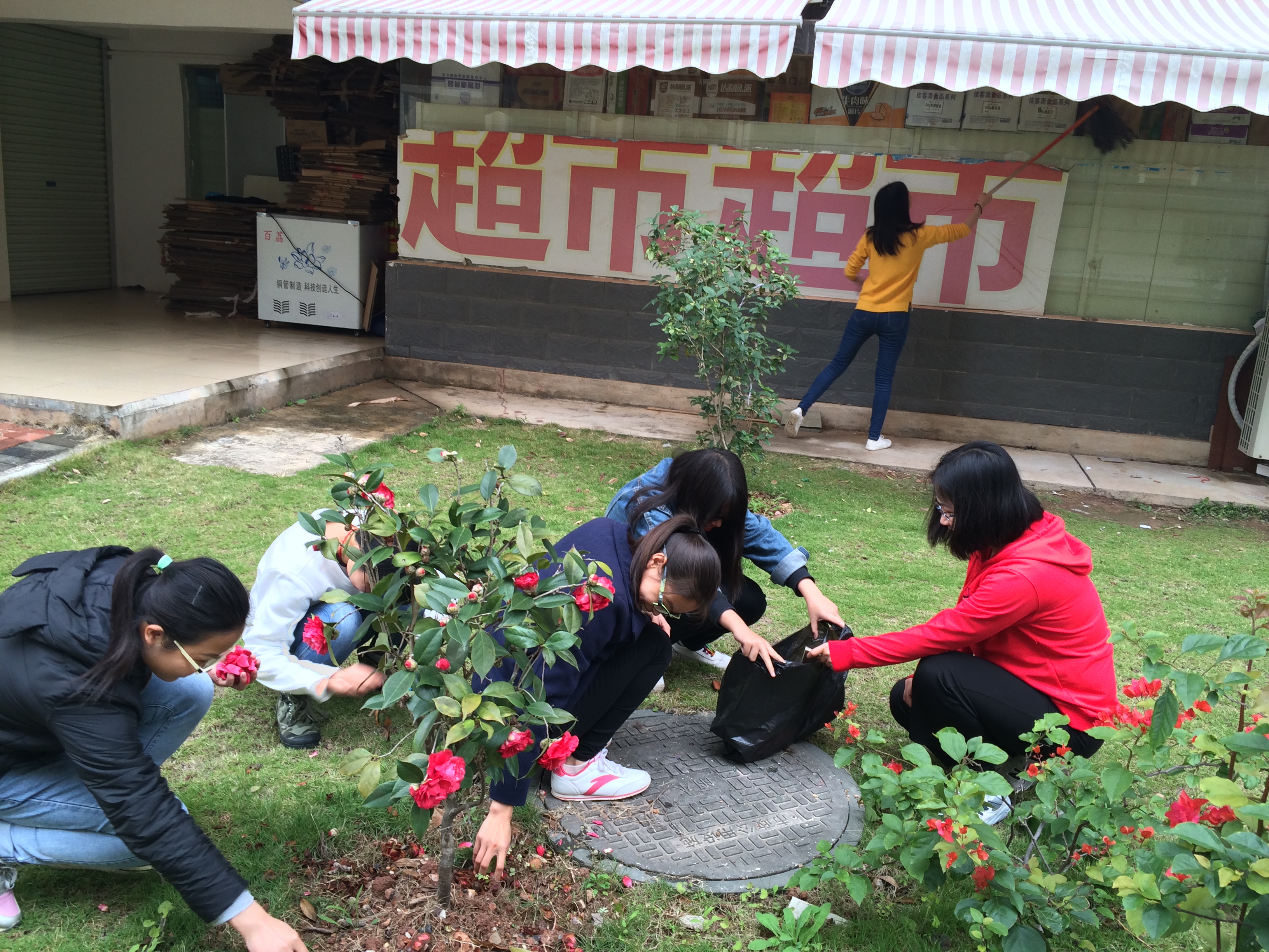药学院2015级食品质量与安全班同学们在打扫校园