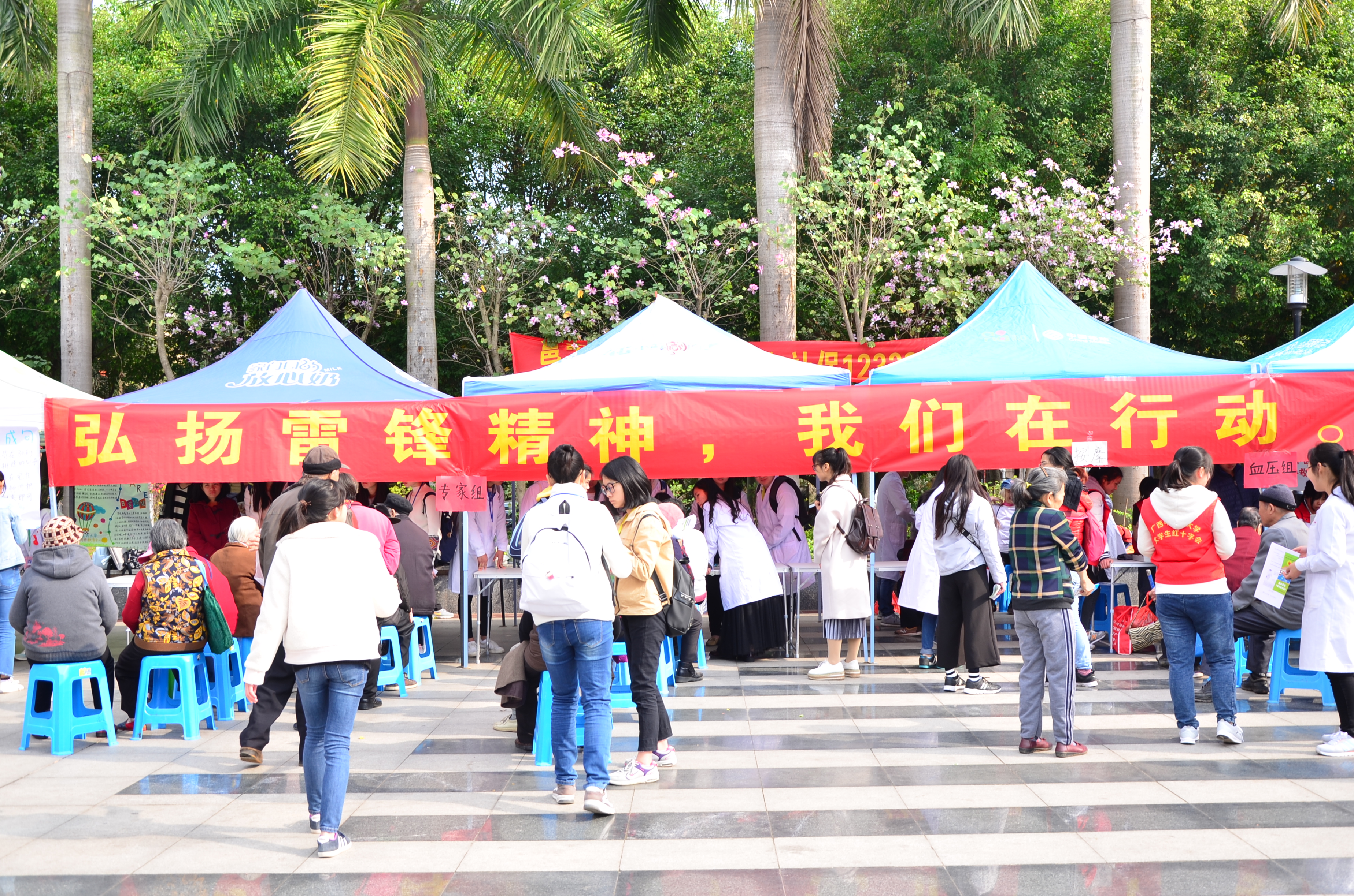 三月春风暖邕城,雷锋精神励人心。为大力弘扬雷锋精神和社会主义核心价值观,引导广大青年学生准确把握雷锋精神的时代内涵,做传统美德的传承者和社会主义道德规范的实践者。3月26日,基础医学院在南宁市邕宁区新兴广场举行了“弘扬雷锋精神,奏响时代旋律”为主题的大型义诊活动。本次学雷锋志愿服务活动受到了学校以及基础医学院的高度重视,得到了邕宁区政府、团委和所辖社区工作人员的大力支持,得到当地群众的一致好评。