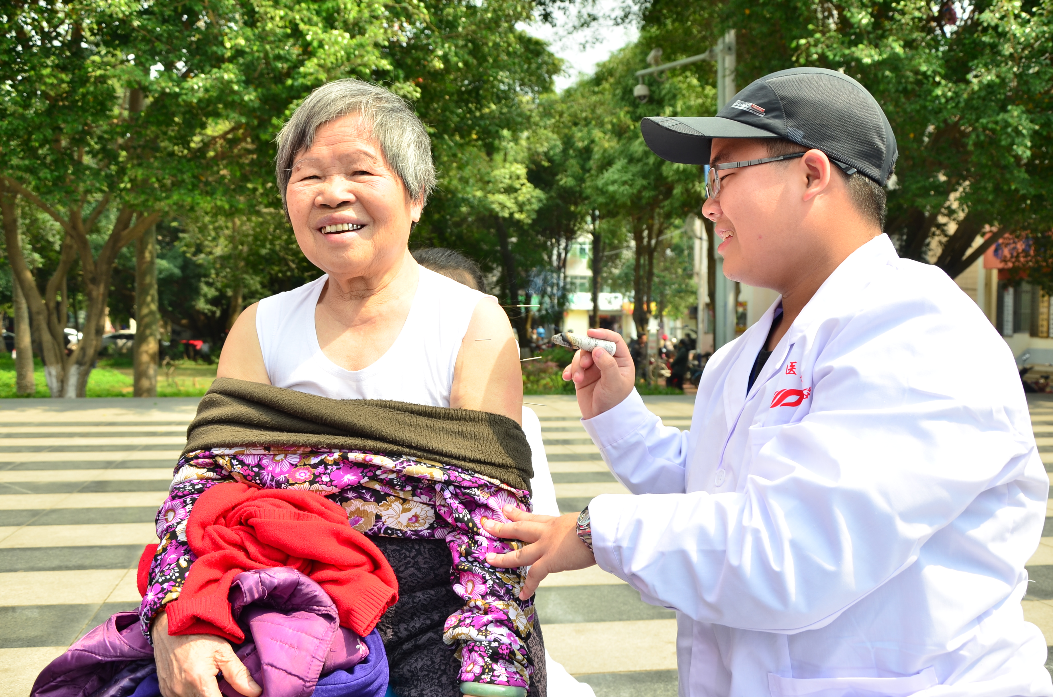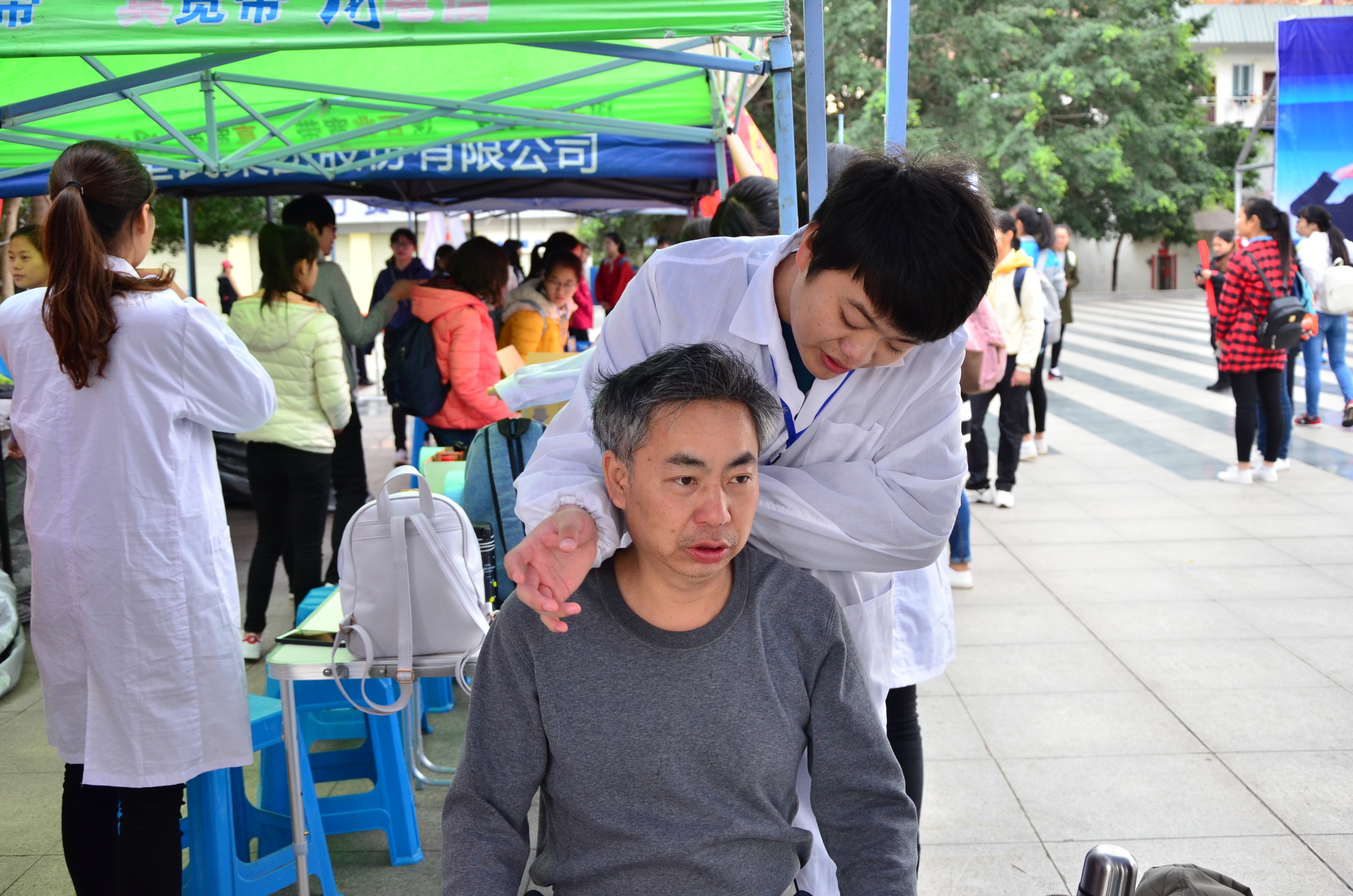 活动过程中,血压组、针灸组和推拿组同学们凭借良好的服务态度和娴熟的技艺得到了居民们的一致好评。血压组为广大患者免费测量血压,围绕高血压进行基本诊断、日常防控、进行健康宣教;推拿组的同学采用滚法、弹拨法、揉法和一指禅推法等手法帮助居民们活络筋骨,缓解疲劳酸痛;针灸组拿针时手如握虎,不省略不随便的对待病人,每一针都全神贯注;后勤组的同学负责发放挂号牌,引导居民去排队并耐心地回答居民们的询问,对维持现场秩序起到重要作用。活动持续一个上午,同学们与居民们相处融洽,活动现场充满了温情暖意。
