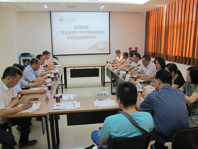 在与河南中医药大学以及各医院的交流中,唐友明院长也介绍了瑞康医院的发展情况,医院文化以及医院中医做特做优,西医做强做精,坚持“中西医并重”的办院方针,并指出医院中医文化传承和特色建设的重要性,要博众家之长,做出特色,做出品牌。