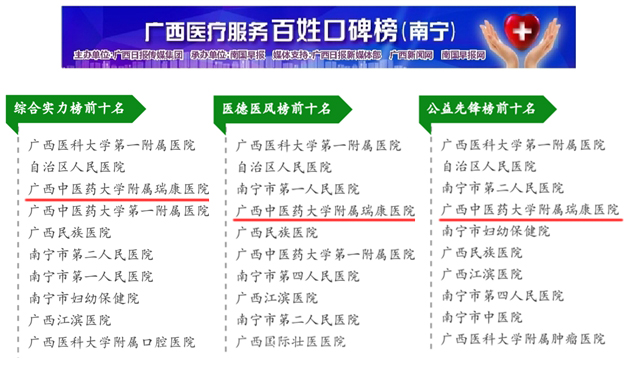 瑞康医院揽获“广西医疗服务百姓口碑榜”三大奖项