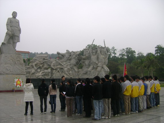 活动在大家凝重有力的团歌歌声中正式开始。在庄重的纪念碑前,全体师生怀着沉痛的心情向烈士默哀,并向革命烈士献上了的花圈。老师的讲话和学生代表的发言再次激起了同学们的拳拳赤子心。同学们誓言发扬“在逆境中崛起,在忧患中奋进,在辉煌中卓越”的精神,并向先烈们郑重承诺将永远践行医学生的誓言:“谨记健康所系,性命相托,除人类之病痛,助健康之完美……”。然后,大家为烈士们送上了亲手制作的小白花。最后,师生们参观广西革命烈士纪念馆,瞻仰革命先烈的先进事迹。