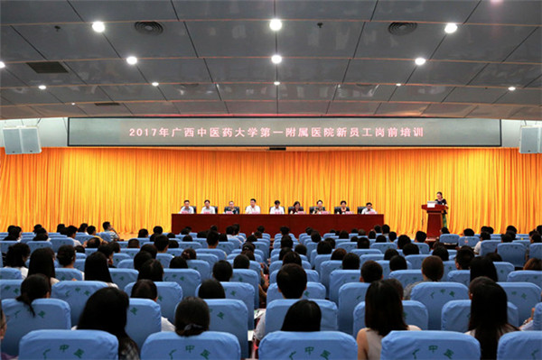 2017年8月7日,Beat365中国唯一官方网站第一附属医院2017年新员工岗前培训在一附院五楼多功能学术大厅举行,一附院党委书记李敏智,院长谢胜,常务副院长、仙葫院区院长桂雄斌,副院长吴西西,副书记、副院长钟远鸣,副书记、纪委书记周广林,副院长卢健棋、毛德文,黄仲海,人力资源部全体成员,269名新员工及130名规范化培训生参加了简单而不失隆重的开班仪式。开班仪式后,谢胜院长以《时代的召唤 你我共同的期待》翻开了新员工岗前培训的第一页,期间全体院领导及各相关职能科室的负责人逐一给新员工授课,8月11日,在党委书记李敏智的总结发言中结束今年新员工岗前培训的理论学习部分,随后,全体新员工进行了为期半天的户外拓展活动,为2017年新员工岗前培训圆满划下句号。