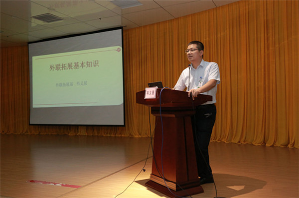 外联拓展部主任韦义展给新员工授课