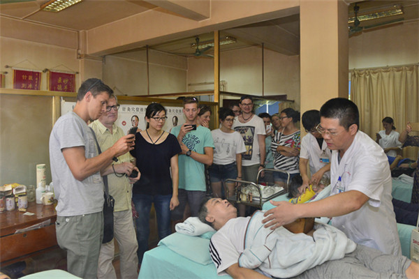 鲍尔教授一行对一附院的规模及传统中医药文化十分感兴趣,吴西西详细介绍了一附院的基本情况,陪同夏令营师生重点参观了中药房、推拿科、针灸科及中医治未病中心。