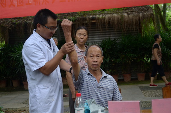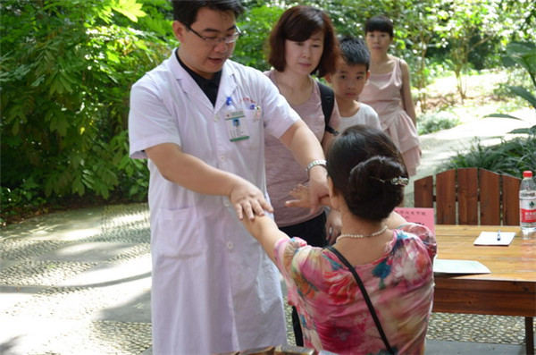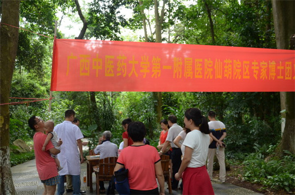 10月1号-2号,在国庆节假期里,一附院组织仙葫院区壮医科、运动医学与关节镜外科、东葛院区推拿科,赴广西药用植物园为周边的居民开展义诊和健康宣传。