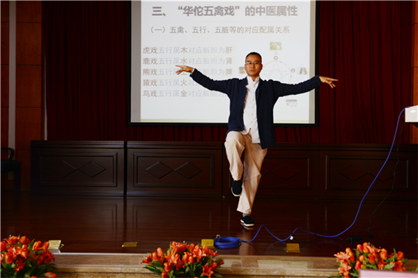 同时举办的“传统中医运动疗法在脊柱相关性疾病治疗与康复中的应用”研修班是广西首个省级医疗机构主办的中医导引研修项目。区内专家齐聚一堂,展现中医导引养生学领域的新理论、新技术,内容丰富、重点突出、特色鲜明,包含了治未病、五禽戏、八段锦、脊柱调养、推拿功法、中医科研、音律导引、茶道养生等创新内容。杨宇主治医师主讲《传统中医运动疗法(导引)“华佗五禽戏”的中医临床应用》,广西名中医黄锦军教授主讲《将推拿功法运用于“调督”的临床意义》,广西名中医周宾宾教授主讲《养身健体好方法——关爱脊柱,调整姿势》,Beat365中国唯一官方网站体育部兰兰教授主讲了《中医导引术——八段锦的养生内涵和实操讲解》,广西艺术学校韦盛副教授主讲了《化音为气,化气为力,音乐带来的体征性变化》,推拿科雷龙鸣教授主讲《颈腰椎疾病的功能锻炼与健康教育》,科研部唐宏亮副教授主讲了《中医科研之路》,中医治未病中心刘倩护士长主讲了《创新治未病模式,助力健康中国梦》,李羚医师主讲了《浅析中医体质辨识在导引临床应用中的意义》等课程。