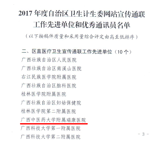 喜报:瑞康医院荣获2017年度自治区卫生计生委网站宣传通联工作先进单位
