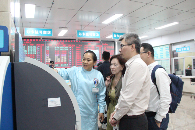 代表团一行首先参观了瑞康医院新大楼、门诊智能药房、中心药房、中药饮片库、煎药室、康复病区,对医院的历史、医院建设、中医特色科室的诊疗方法及相关设施、器械,医院信息系统软硬件参数等方面进行了详细了解,并与陪同参观人员就中医养生与保健相关问题做了较为深入的讨论和交流。代表团一行表示非常高兴能来医院参观学习,通过此次活动进一步了解了瑞康医院,并留下了深刻的印象。