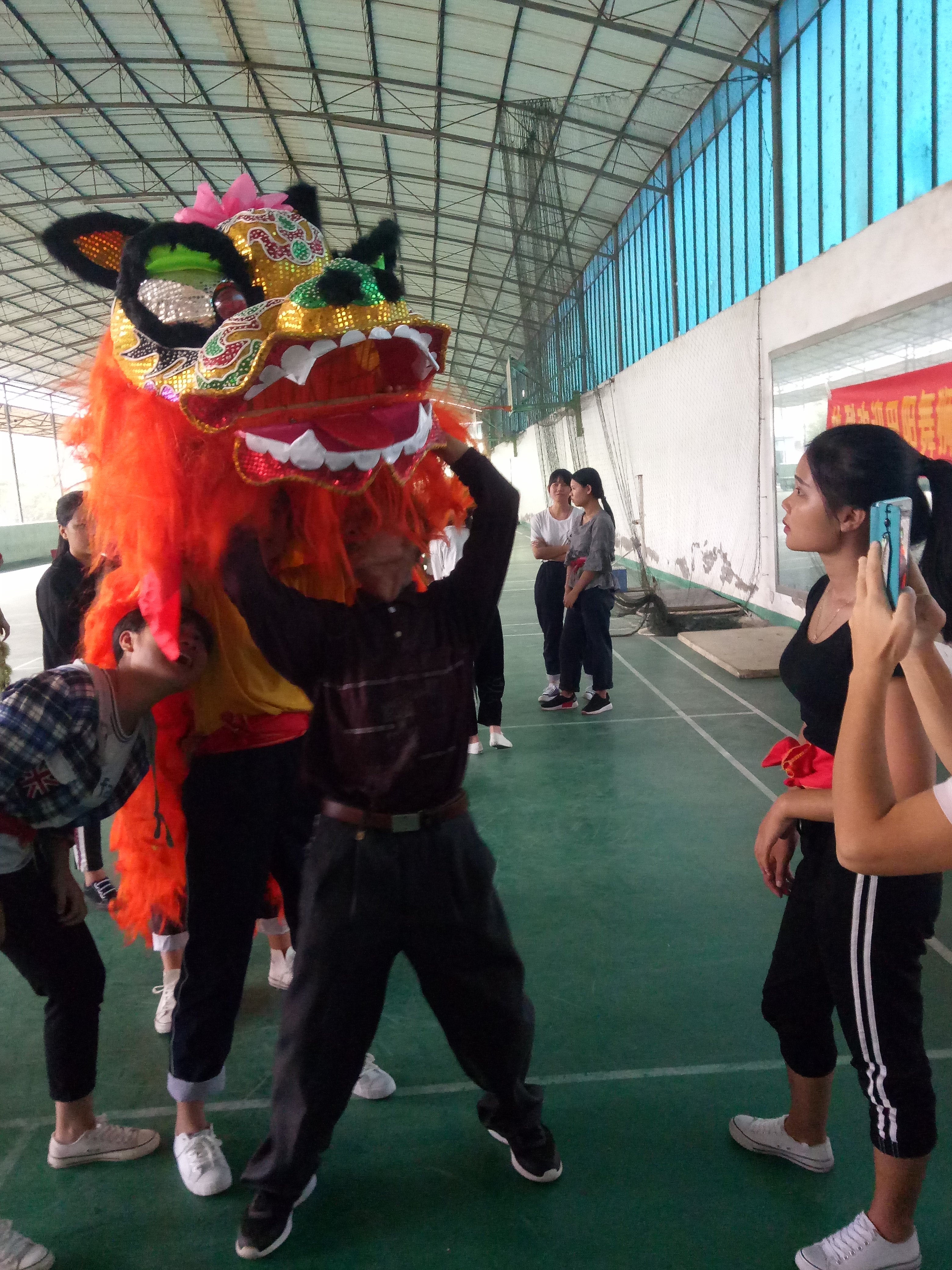 在仪式上,刘竑清明确提出 “学校肩负着文化传承的责任,中医学校更应当为非物质文化遗产保护尽到自己应有的责任。”同时也对师生们提出“年轻人应当掌握几门受益终身的技艺”的期许。接着李永茂大师讲解了“壮狮”的发展历史以及近年来取得的成绩,并针对壮狮“高、难、惊、险、奇、美”六大特点做出了生动的解释。开班仪式结束后,广西田阳舞狮艺术团给学校的弘毅醒狮社进行为期一天半的针对性技能与动作的传授和训练,使师生收益颇丰。