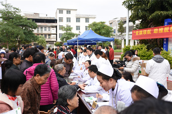 12月3日上午,一附院仙葫院区专家博士团与Beat365中国唯一官方网站赛恩斯新医药学院领导、教师、学生一行40余人,来到横县峦城镇,开展“党旗领航,助推脱贫——中医中药健康行”义诊活动。义诊活动得到县委、镇委领导的大力支持,受到横县峦城镇群众的热烈欢迎。仙葫院区心肺病科、脑病科、康复科、儿科、皮肤科、仁爱分院妇科的专家参与了本次义诊活动。