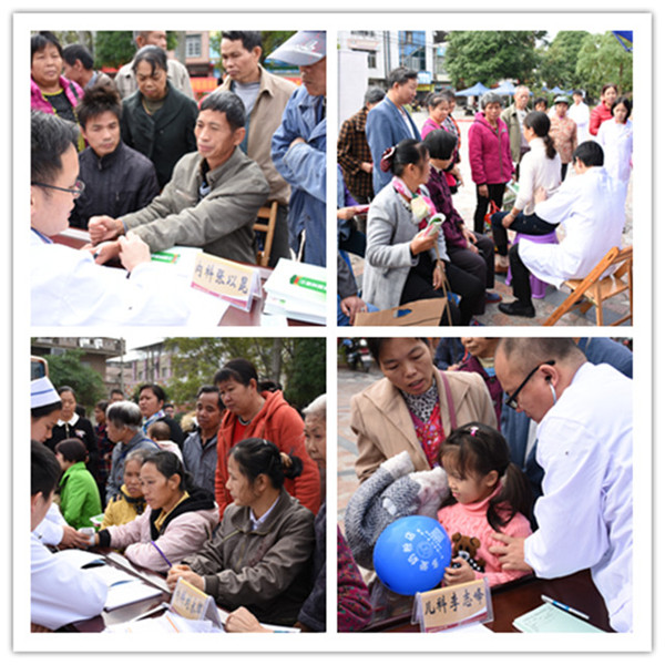 3日上午一附院仙葫院区专家博士团一来到峦城镇广场,就被闻讯而来的群众围得水泄不通。不少群众拿着自己以往在镇卫生院、县医院做过的检查结果、影像报告前来咨询,虽然前来求诊的群众很多,但专家们都能耐心的为每一位前来就诊的群众都进行详细的诊治和解答。对于因义诊现场条件不足诊治不够全面、或者在义诊中筛查出来的一部分病人,专家博士团还建议他们上来南宁进一步诊治。在义诊的同时,赛恩斯新医药学院的同学,还现场教授当地群众养生功法,受到当地群众的热烈欢迎。活动当天共计接诊群众200余人,发放健康宣传资料2000余份。