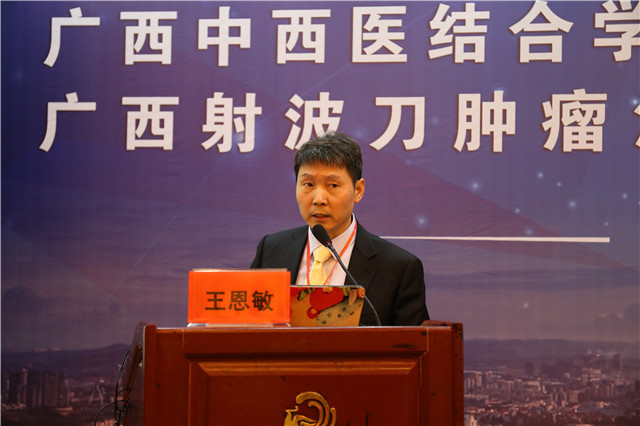 黎甲文对会议的召开表示祝贺,他谈到,恶性肿瘤是危害人类健康的重大疾病,给社会带来巨大的危害,而如今恶性肿瘤发病率仍有增高趋势,防治恶性肿瘤成为我国医药卫生事业的重大课题和工作重点。自2014年起,广西中医药防治肿瘤专科创新平台开始建设,制定了射频消融、射波刀联合中药治疗的诊疗方案等,并在17家中医肿瘤重点专科进行临床应用,建立可操作的双向转诊制度。几年来,肿瘤专科创新平台建设取得了明显成效。对于进一步推进平台的建设,他提出了以下几点意见:第一,要更新思路,提高对创新平台重要性的认识,思想观念要与时俱进,通过平台真正加强与各成员单位的联系,并鼓励更多基层医院积极加入到创新平台中来,进一步提升服务能力和技术水平。第二,要加强人才队伍特别是中医人才队伍的建设,瑞康医院拥有一大批中医名家,各单位要借助这个平台通过对口帮扶、继续教育等方式,推广医疗卫生适宜技术,提升基层医务人员的业务水平。第三,要进一步构建肿瘤专科联盟,持续通过平台建设和专科联盟发挥资源辐射作用,各级医疗机构各司其职,通过多层次广覆盖的精准支援,增强对患者的紧急处置能力,逐步建立高效的转诊制度。