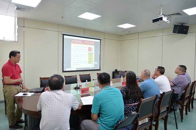 唐友明院长(左一)与黎甲文处长会上交流