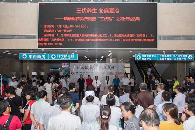 为满足人民群众对改善医疗服务的新期待,创新举措不断提升患者满意度和获得感,展现医院中医药文化,7月17日入伏天早上,瑞康医院在A座一楼门诊大厅隆重举行“三伏养生 冬病夏治——瑞康医院免费贴敷‘三伏贴’之初伏贴活动”,针灸科、呼吸内科、脾胃病科、脑病科一区、脑病科二区、老年病科、妇科、产科、儿科、风湿免疫科、肿瘤科三区、耳鼻喉头颈外科、脊柱一区、脊柱二区等14个科室医护人员现场为近千名群众免费贴敷“三伏贴”之初伏贴。