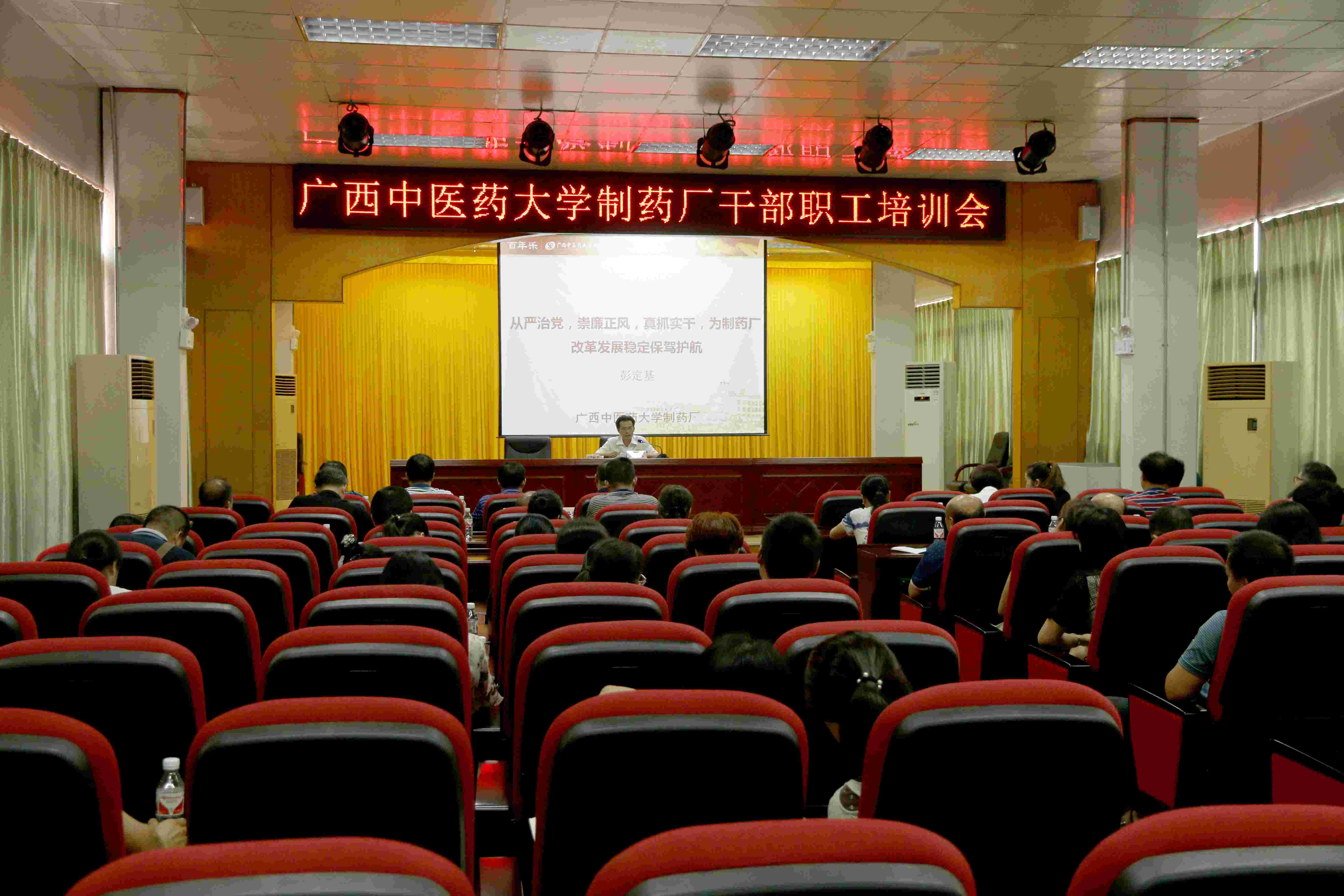 7月19日下午,制药厂开展干部职工培训,旨在进一步加强我厂干部职工队伍的自身建设,提高干部职工的政治素养和业务能力。制药厂党委书记、厂长何天富,党委副书记、纪委书记彭定基,副厂长陈洪涛、覃明雄、吴玉强以及干部职工代表100余人参加了会议。会议由陈洪涛主持。