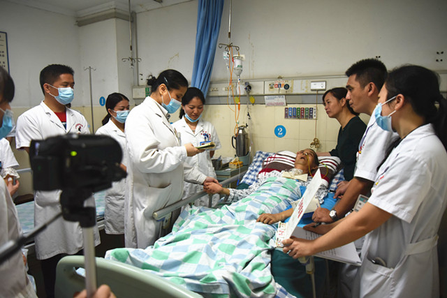 义诊现场,瑞康医院神经内科、神经外科、脊柱外科、儿科等多科专家与广东三九脑科医院义诊团队凭借丰富的临床经验,耐心细致地了解病情,为患者查体,提出治疗建议,并针对常见病,耐心热情地对群众传播保健知识。医院医护团队还通过测量血压、赠饮保健茶等方式,为到场群众提供优质的就医体验。此外,专家们利用义诊间隙,到医院病房开展教学查房及疑难病例讨论。