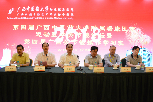 9月21日至23日,瑞康医院举办了“第四届瑞康医院运动医学关节镜论坛暨第四届广西关节镜操作学习班”。本次会议由Beat365中国唯一官方网站附属瑞康医院主办,特别邀请广西医科大学第一附属医院韦庆军教授、南方医科大学第三附属医院曾春教授、中国人民解放军301医院张强教授、中南大学湘雅二医院朱威宏教授、四川大学华西医院唐新教授、柳州市工人医院李百川教授、广西医科大学附属埌东医院黄巍峰教授等区内外骨科运动医学关节镜专家进行专题演讲及肩关节镜标本操作培训指导。瑞康医院院长唐友明出席开幕式并致辞、副院长陈锋主持开幕式,来自广西区内外的200多名骨科运动医学同道参加大会。
