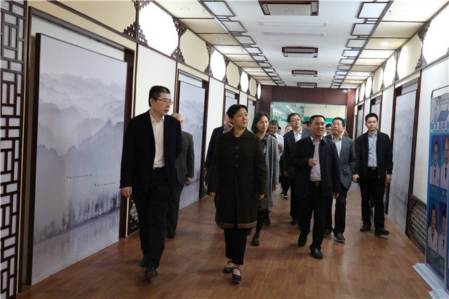 调研组一行首先实地调研了瑞康医院智能药房、中西医结合转化医学中心、国医大师馆、国医堂名医馆、中医(妇科)盆底诊治中心、正骨推拿理疗馆、I期药物临床试验研究中心、肿瘤科、儿科病房等,期间对医院浓郁的中医药文化氛围频频赞许。