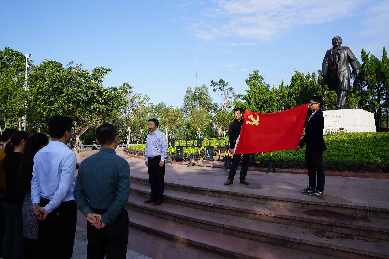 在莲花山公园山顶广场,全体党员瞻仰了邓小平同志铜像,深切缅怀改革开放总设计师邓小平同志的丰功伟绩。在铜像前、党旗下,大家重温入党誓词,再一次庄严地向党组织宣誓,表达忠诚、回顾初心、净化灵魂。