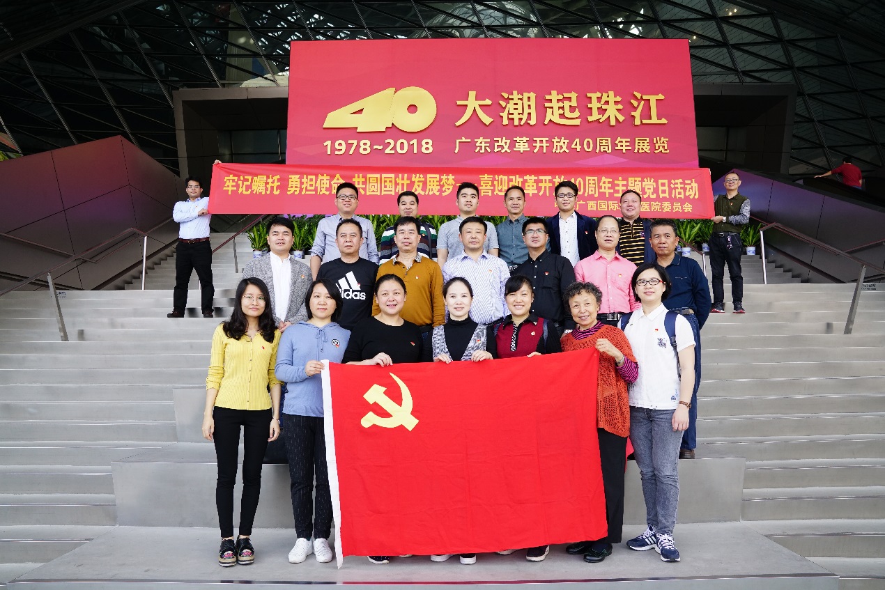 通过此次活动,各位党员同志备受鼓舞,切身感受到改革开放40年来祖国形势大好,各方面发展日新月异、突飞猛进。广西国际壮医医院正面临着新的机遇和新的挑战,党务干部决心站在新的历史起点,明确身上的责任,要把日常工作和党务工作有机结合起来,尤其是把医院未来的发展,学科建设、队伍建设、医务工作等有机结合起来,坚定理想信念,牢固树立“四个意识”,在医院发展建设中发挥党组织的战斗堡垒作用和党员先锋模范作用,推动医院高质量发展作出新的贡献。