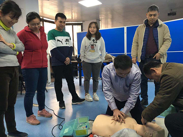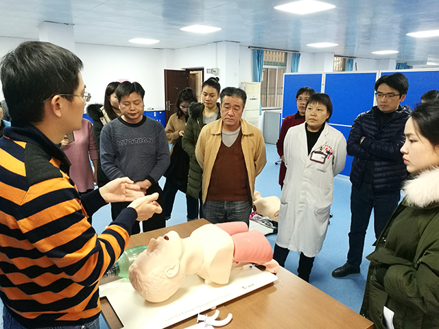 此次培训由获得全国心肺复苏及美国ASA认证的医院急诊科龚斌副主任及科室急救骨干医师授课及带教,重点对心肺复苏术进行了全面的理论讲授和操作规范培训,包括急救前的操作准备工作,操作者体位、判断患者意识、检测大动脉搏动,启动急救程序,放置复苏体位,心脏按压的部位、手法、幅度、频率,畅通气道的基本流程及人工呼吸的操作规范等方面。