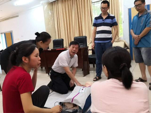 活动上,韦思尊副院长首先介绍了我国猝死后心肺复苏(CPR)成功率极低的窘境:80%的猝死发生于院外,一味地等待专业医疗人员的救治,往往错过生命的黄金抢救时限;从而需依靠患者就近的人员进行CPR急救,即作为“第一目击者”就担负了实施CPR的重任,因此全民普及心肺复苏技术是提高心脏骤停患者救治成功率的重要举措。
