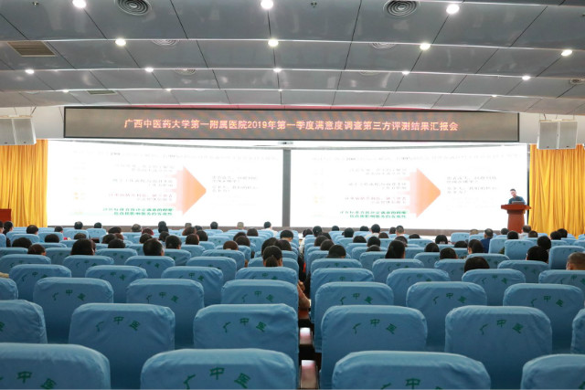 为贯彻落实“广西三级公立综合(专科)医院综合绩效考核”要求,一附院邀请第三方满意度测评机构进行了2019年第一季度患者(职工)满意度测评工作,并于5月7日下午,在住院综合大楼5楼多功能厅召开了此次测评结果分析汇报会。一附院领导谢胜、吴西西、钟远鸣、周广林、卢健棋、毛德文、黄仲海、张高炼、王煜明及全体中层干部参加了会议。