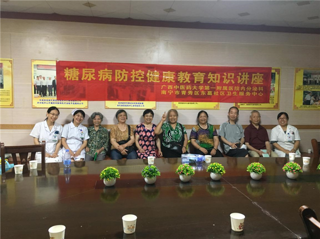 5月18日上午,为了贴近社区,走进社区,提高社区居民对糖尿病的重视,一附院内分泌科陆小娇护士长、黄蓉主治医师一行到东葛社区服务中心开展“糖尿病防控健康教育知识讲座”。