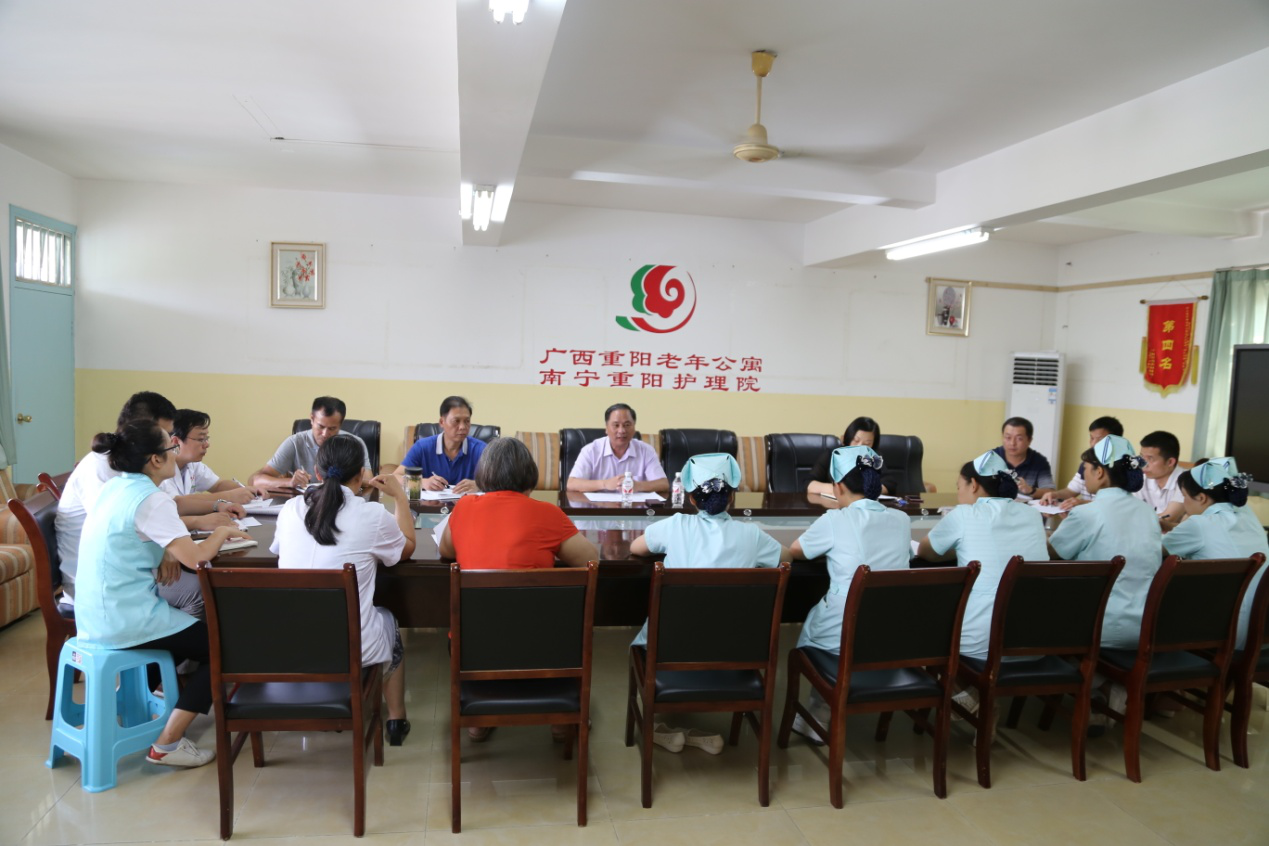 重阳老年公寓还在5月17日制定了《解放思想、改革创新 、扩大开放、担当实干,推动经济社会高质量发展” 大讨论》的实施方案,专门组织中层管理人员召开专题会议并提出了具体要求和实施细则,重点围绕公寓各级管理人员如何履职履责、担当实干进行整改和提高。同时还围绕公寓的核心竞争力的建设方面所存在的问题进行讨论。