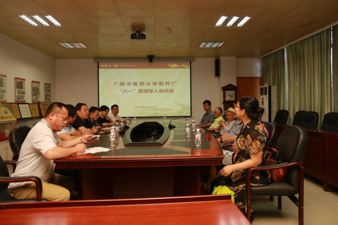 8月1日下午,制药厂在科研办公楼六楼会议室召开庆祝“八一”建军节座谈会,制药厂纪委书记彭定基,副厂长吴玉强以及复退军人10余人参加了此次座谈。
