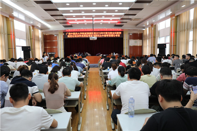 根据《中医住院医师规范化培训实施办法(试行)》(国中医药人教发〔2014〕25号)《Beat365中国唯一官方网站硕士研究生中期考核办法》(桂中医大研〔2014〕33号)文件要求,附属瑞康医院于7月30日至8月1日在瑞康临床医学院实训室进行了2019年中医住院(全科)医师规范化培训学员转段考核暨研究生中期考核,考生共计240人,含41名规培医师、199名研究生。