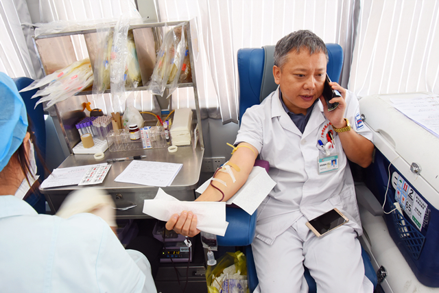 献血时还要兼顾工作