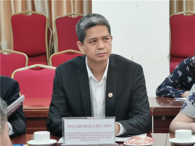 为加强广西红十字会与东盟各国红十字会的合作与交流,10月15日,广西红十字会常务副会长冯国平率队到越南红十字总会访问。附属瑞康医院长期致力于公益事业,2003年至今共救助了6000多名先心病患儿,是广西最大的先心救助平台。医院胸心血管外科主任杨柳山受邀一同前往越南,受到越南红十字总会主席阮氏春秋的热情接待。