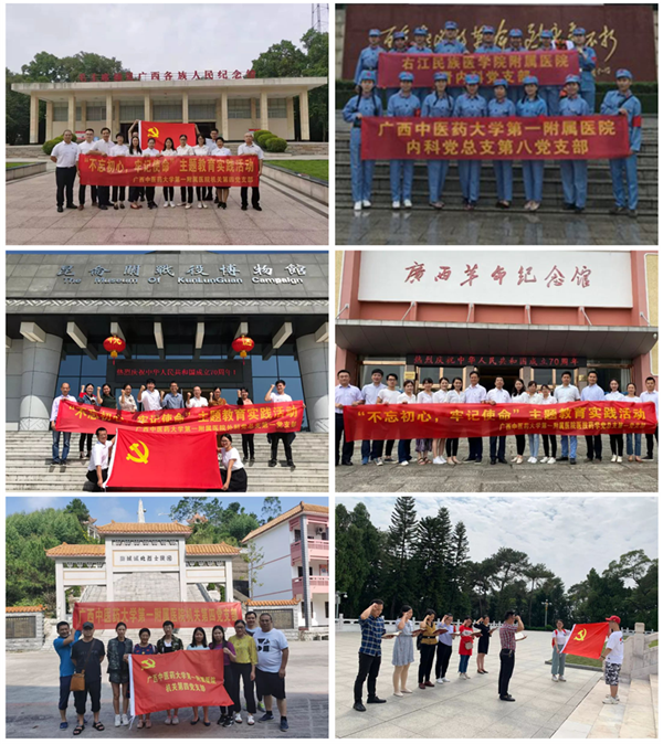 为了“传承红色基因,弘扬红色精神”,一附院各党支部还组织支部党员到毛主席接见广西各族人民纪念馆、百色起义纪念馆、广西革命纪念馆、韦拔群纪念馆、革命烈士纪念碑、邓颖超纪念馆等革命教育基地进行参观学习,通过学习革命历史、缅怀革命先烈、重温入党誓词等形式,带领党员们学习传承老一辈共产党人的革命精神。一次次生动而深刻的革命传统教育,使党员们心灵上受到了震撼、精神上得到了触动、思想上得到了净化,更加深刻地感受到肩上的责任、使命,党员们纷纷表示要传承老一辈无产阶级革命家的精神,饮水思源不忘本,牢记初心使命,坚定理想信念,以革命先烈的精神为动力,立足本职,扎实工作,发挥党员的先锋模范作用,为党的伟大事业,为国家富强、民族振兴而贡献力量。