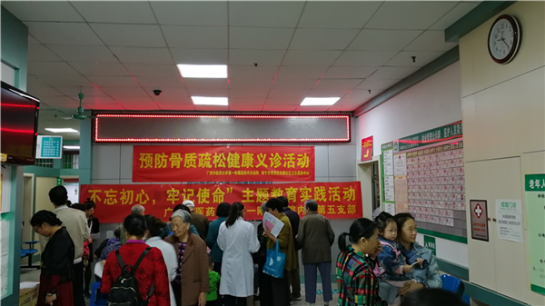 10月20日为世界骨质疏松日,今年的主题为“别让骨质疏松压垮你”。为进一步提高群众对骨质疏松症防治的认识与重视,10月25日上午,一附院内分泌科李双蕾主任医师、陈文辉副主任医师等一行到南宁市青秀区东葛社区卫生服务中心开展骨质疏松健康义诊活动。