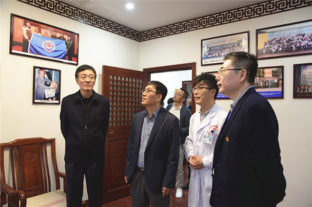 10月28日上午,“973 计划”首席科学家杨永广,吉林中科董事长梁磊一行莅临附属瑞康医院交流指导工作。医院党委书记高宏君、副院长韦思尊、纪委书记黄建民、副院长宋策以及相关职能部门负责人热情接待其一行。杨永广一行先后参观了医院中西医结合转化医学中心、国医大师馆、院史馆、治未病中心、国医堂名医馆、正骨推拿理疗馆、针灸馆,对传统中医文化表现出了浓厚的兴趣,对中医药的神奇疗效发出了由衷的赞叹。