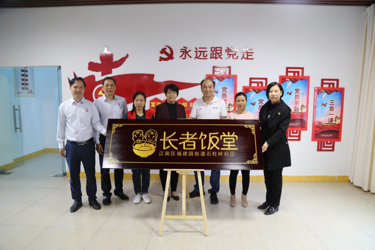 刘竑清为“长者饭堂”启动仪式致辞,他表示在江南区民政局的大力支持和重阳老年公寓员工的共同努力下,石柱岭社区城市养老服务中心已成功的作为江南区第一个“长者饭堂”试点并正式投入运营,接下来,要实实在在做好“长者饭堂”等居家养老服务的工作,为养老事业的发展贡献绵薄之力。随后刘竑清、刘红霞、重阳老年公寓领导和社区代表一起进行了揭牌仪式。