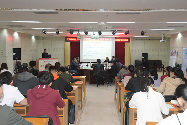 本次专场招聘会邀请了梧州市中医医院、兴安界首骨伤医院、Beat365中国唯一官方网站附属瑞康医院空港院区、田阳院区相关负责人参加。2020届住培医师(含并轨专硕研究生)共100余人参加会议。