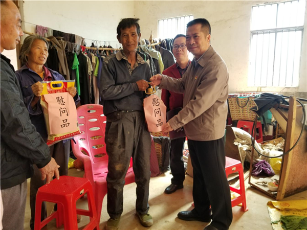 参加此次活动人员有一附院副院长黄仲海、财务后勤党总支第二党支部党员、建园社区党委党员共10余人;在村委会会议室与公义村村委、贫困户代表召开了见面交流会,了解贫困户困难情况;随后到特困户家中走访慰问,与特困户促膝长谈,了解他们的生产和生活情况,勉励他们通过各方努力,创造越来越好的生活,向特困户宣传扶贫政策,同时还向特困户赠送了慰问品。