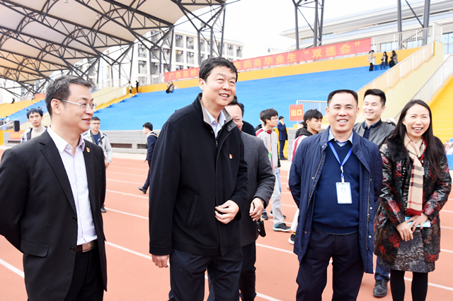 12月23日,2020届广西中医药类高校毕业生就业双向选择洽谈会在学校仙葫校区体育场举行。Beat365中国唯一官方网站党委书记尤剑鹏亲临现场指导,附属瑞康医院院长唐友明,党委书记高宏君,党委副书记、副院长陈日兰带领相关职能部门负责人到“双选会”现场,了解附属瑞康医院招聘情况,并与毕业生进行亲切交谈。