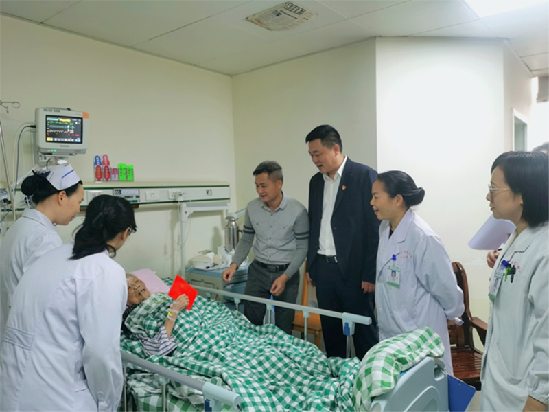 1月10日上午,在新春佳节即将来临之际,由自治区党委组织部、自治区党委老干部局和自治区卫健委代表组成的慰问组一行来到一附院,探望50余位正在住院的离休老干部,给他们带来自治区党委、政府对他们的亲切关怀,送上了新年的祝福及慰问金。一附院党委书记桂雄斌,干部保健科相关工作人员陪同慰问。