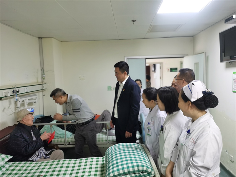 慰问组来到病床前,与老干部们亲切交谈,详细了解他们目前的身体状况和家庭生活等情况,对他们当年为党和国家做出的贡献和无私付出表达了深深的敬意,希望他们能安心养病,保重身体,和家人一起过个幸福平安的春节,并叮嘱医护人员务必精心细致做好老干部们的医疗护理工作,为他们提供更优质的医疗服务。